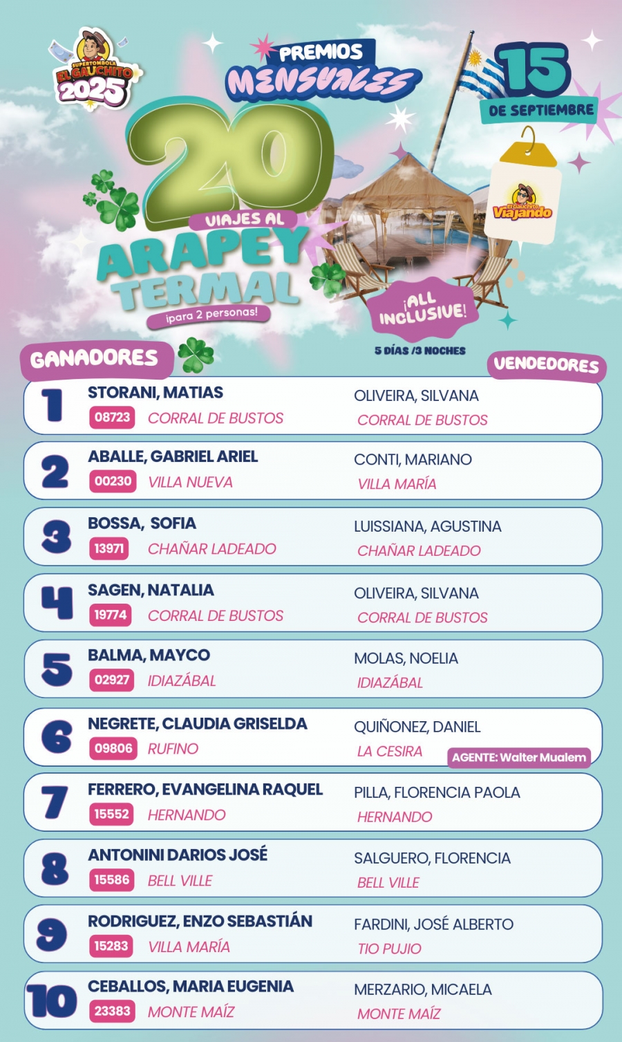 20 viajes al Arapey Termal